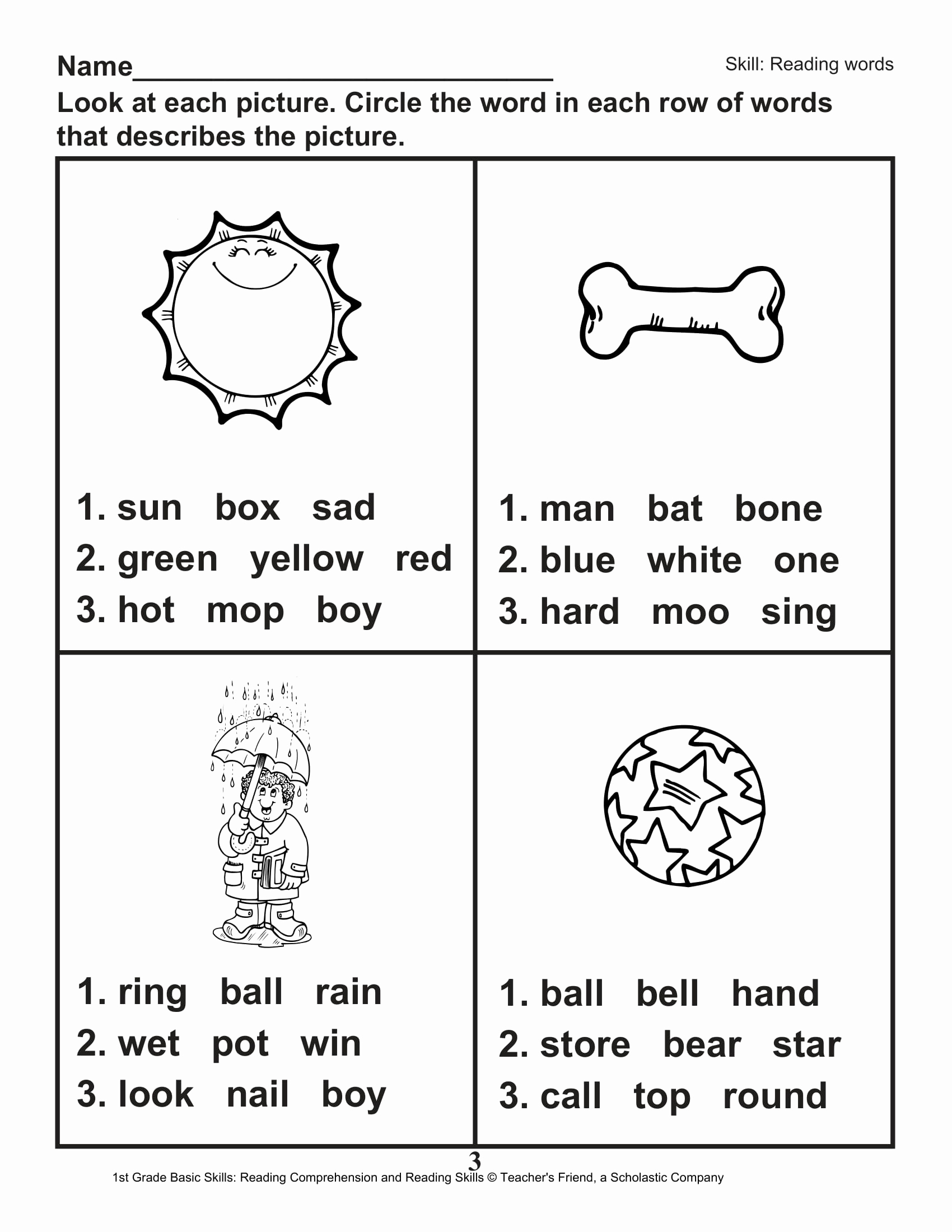 Download and Print 1st Grade Reading Worksheets Listed below