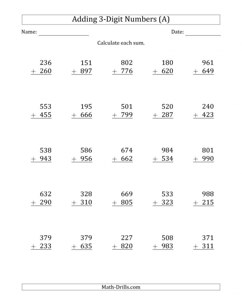 3 Digit Addition Worksheets With Regrouping Math Worksheets Printable