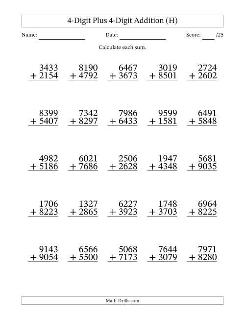 4 Digit Plus 4 Digit Addition With SOME Regrouping H