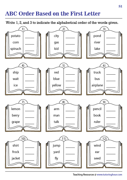 Download and Print Abc Order Worksheets Listed below