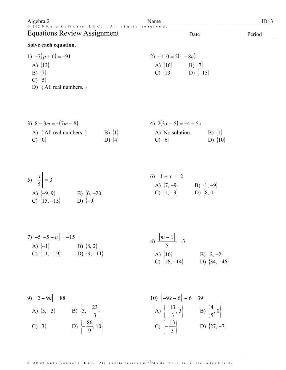 Download and Print Absolute Value Equations Worksheet Listed below