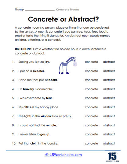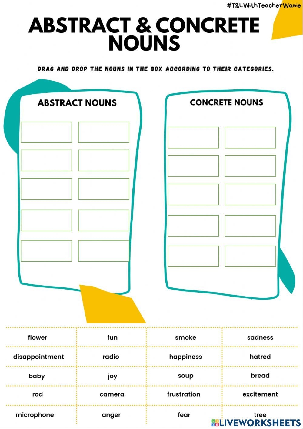 Understanding the difference between abstract and concrete nouns is crucial for developing strong writing skills and effective communication. By practicing with worksheets that focus on these two types of nouns, students can enhance their language abilities and become more proficient in expressing their thoughts and ideas.