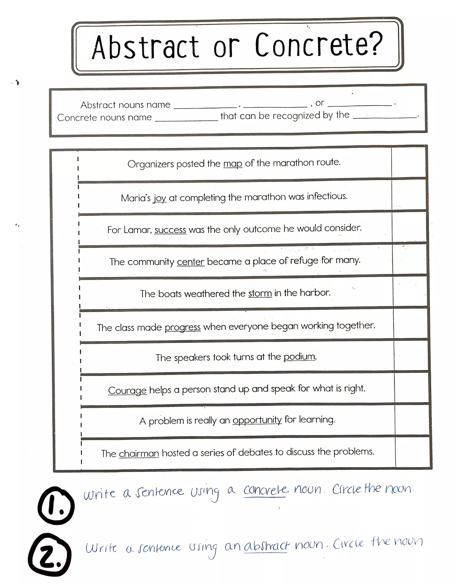 Download and Print Abstract And Concrete Nouns Worksheet Listed below
