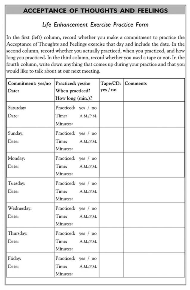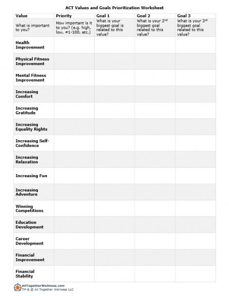 Download and Print Acceptance And Commitment Therapy Worksheets Listed below