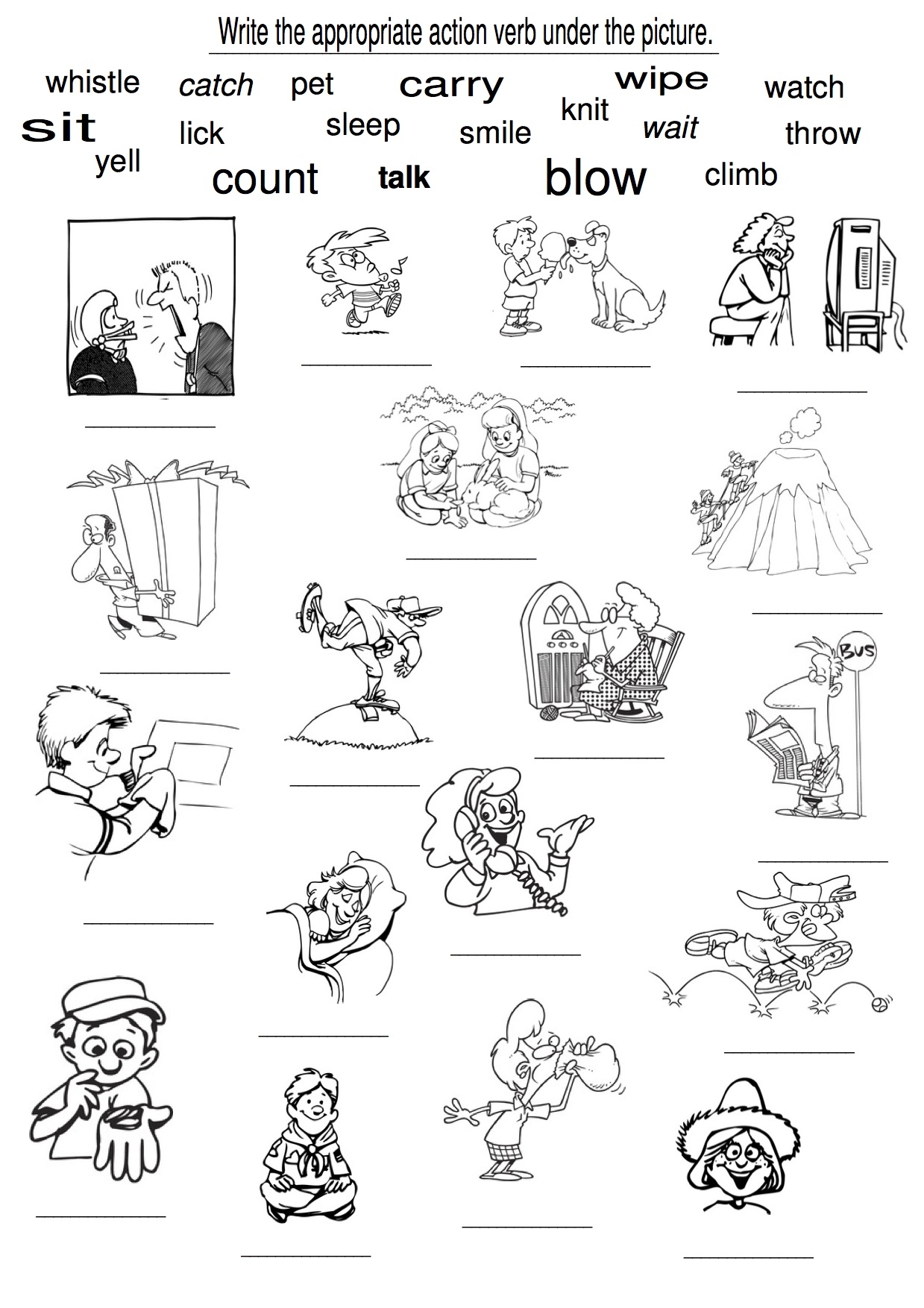 Download and Print Action Words Worksheet Listed below