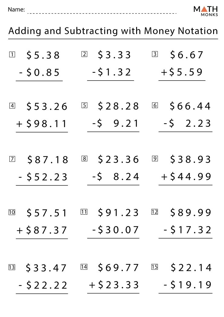 Adding And Subtracting Money Worksheets Worksheets For Kindergarten