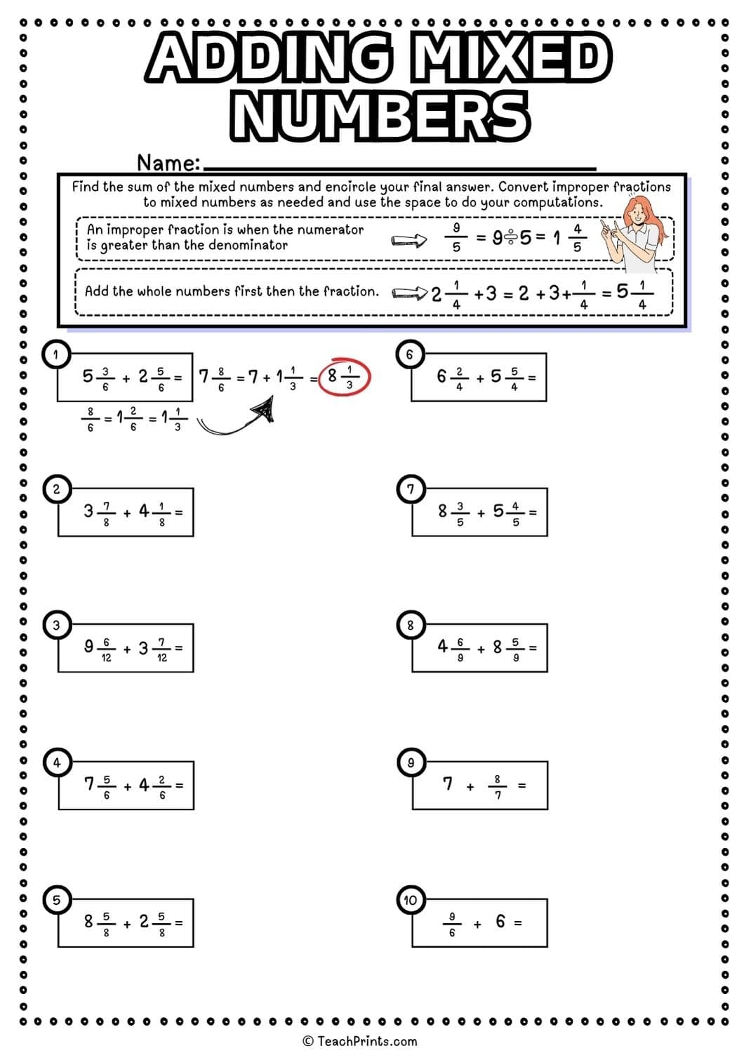 1. Practice: Worksheets offer repetitive practice that is essential for mastering any mathematical concept. By solving multiple problems, students can improve their skills and become more comfortable with adding mixed numbers.