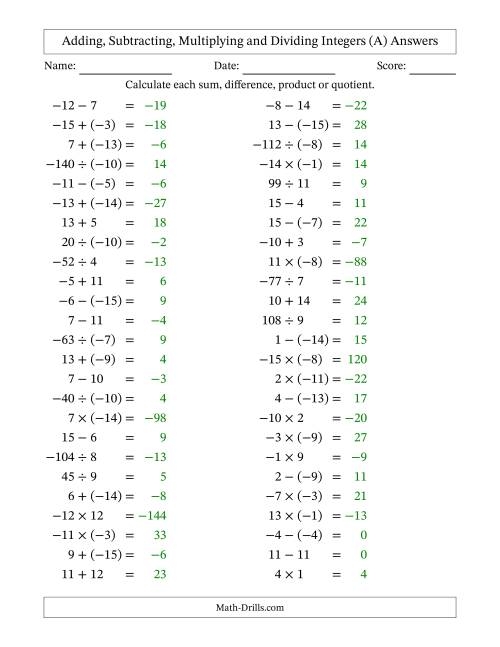 Adding Subtracting Multiplying And Dividing Integers Worksheet