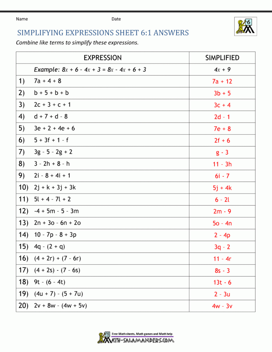 Algebra can be a challenging subject for many students, but with the right resources and practice, it can become much easier. Our worksheet is designed to cover a variety of topics related to algebraic expressions, including simplifying expressions, combining like terms, and more.
