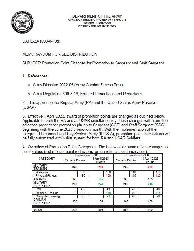 ACFT Promotion Point Changes Worksheets Library