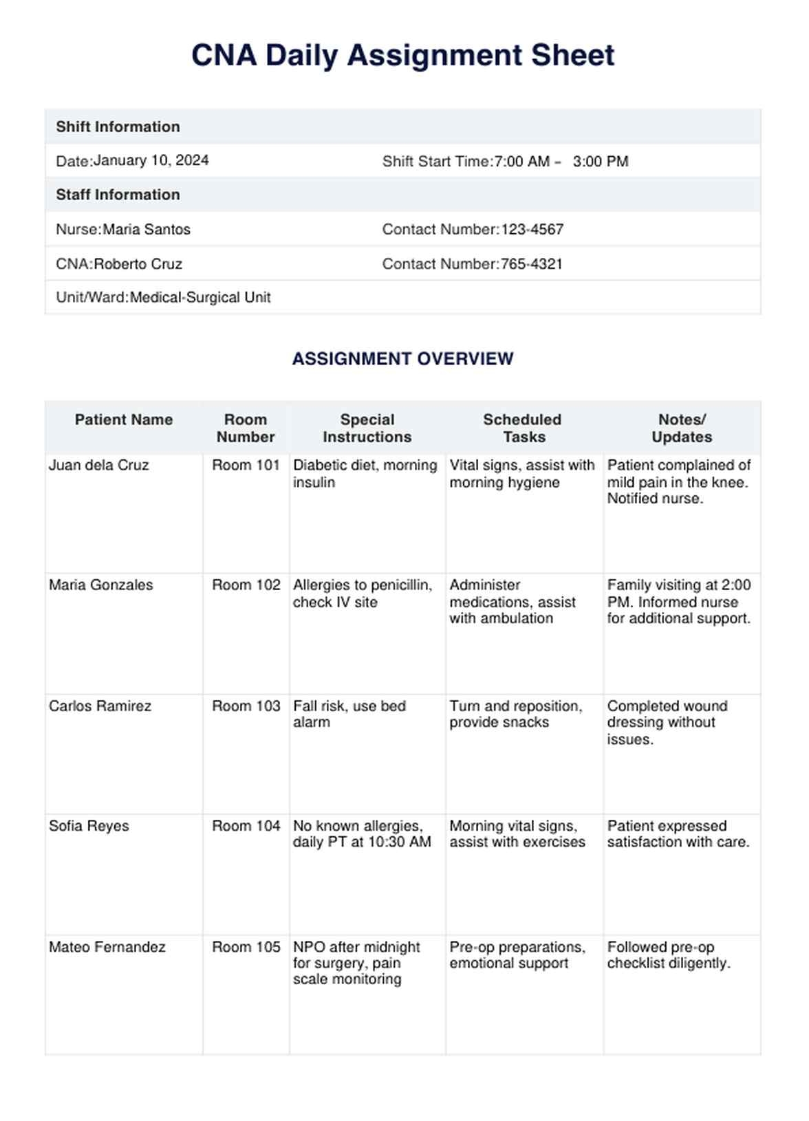 Printable CNA Daily Assignment Sheet Example Free PDF DownloadPrintable CNA Daily Assignment Sheet Example Free PDF Download