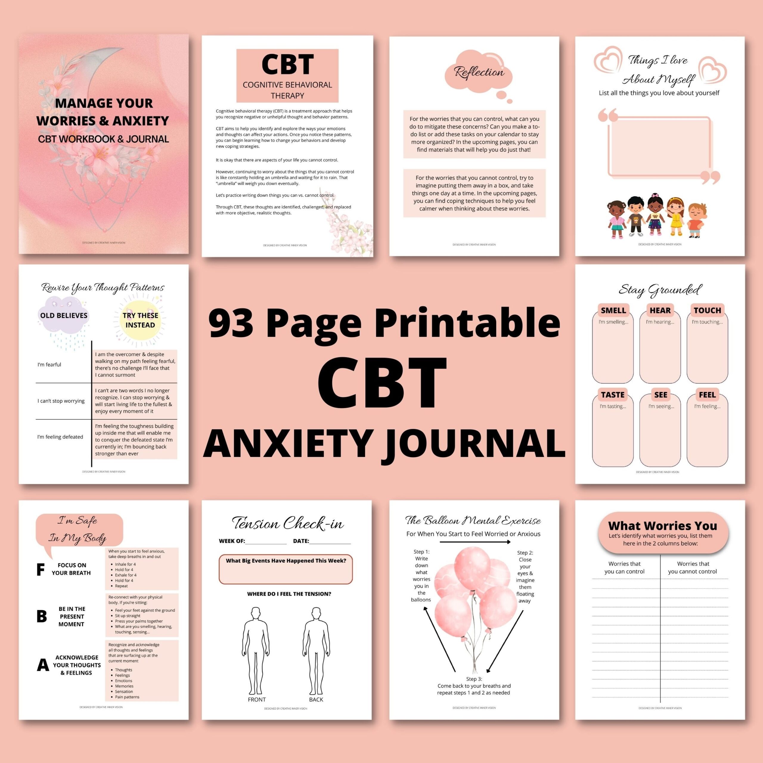 CBT Anxiety Journal Printable Manage Worries Workbook Etsy