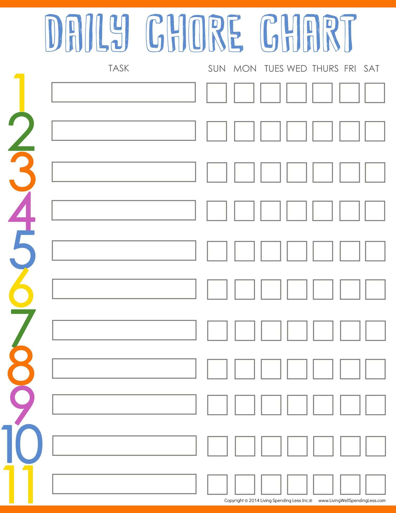 Chore Chart Template Free Printable