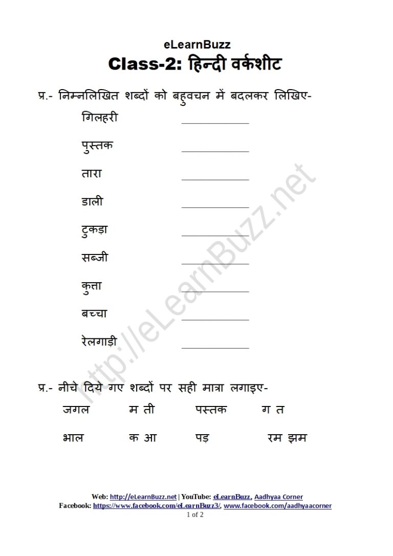 Hindi Worksheet For Class 2 Set 2 ELearnBuzz