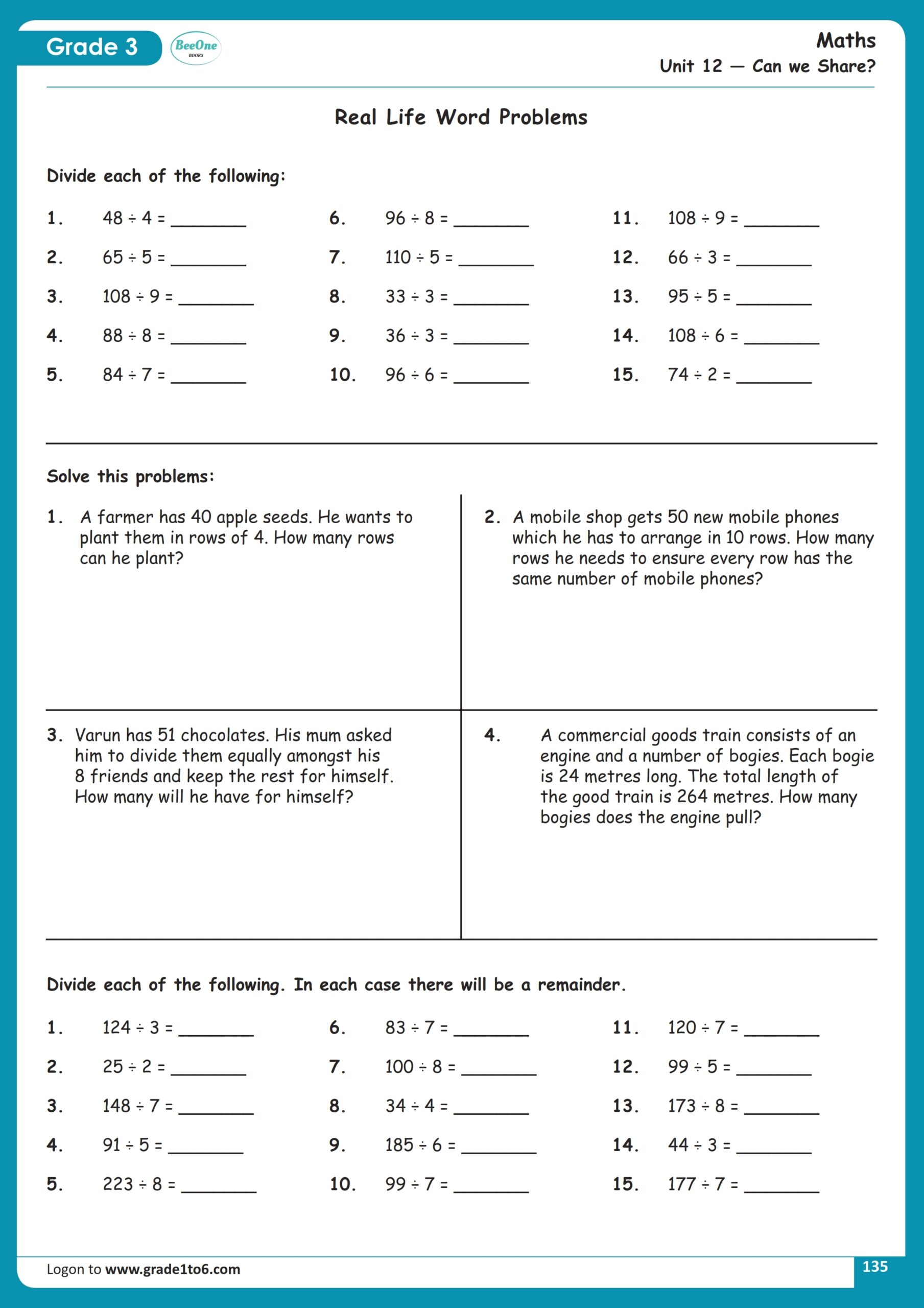 Download and Print Class 3 Maths Worksheet Pdf Listed below