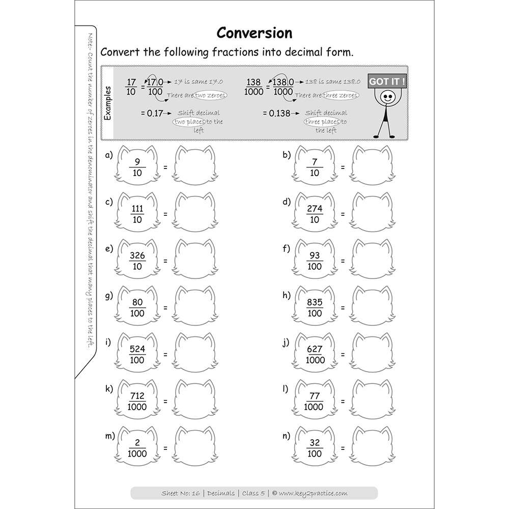 Class 5 Maths Worksheets I Chapter Decimals Key2practice Workbooks