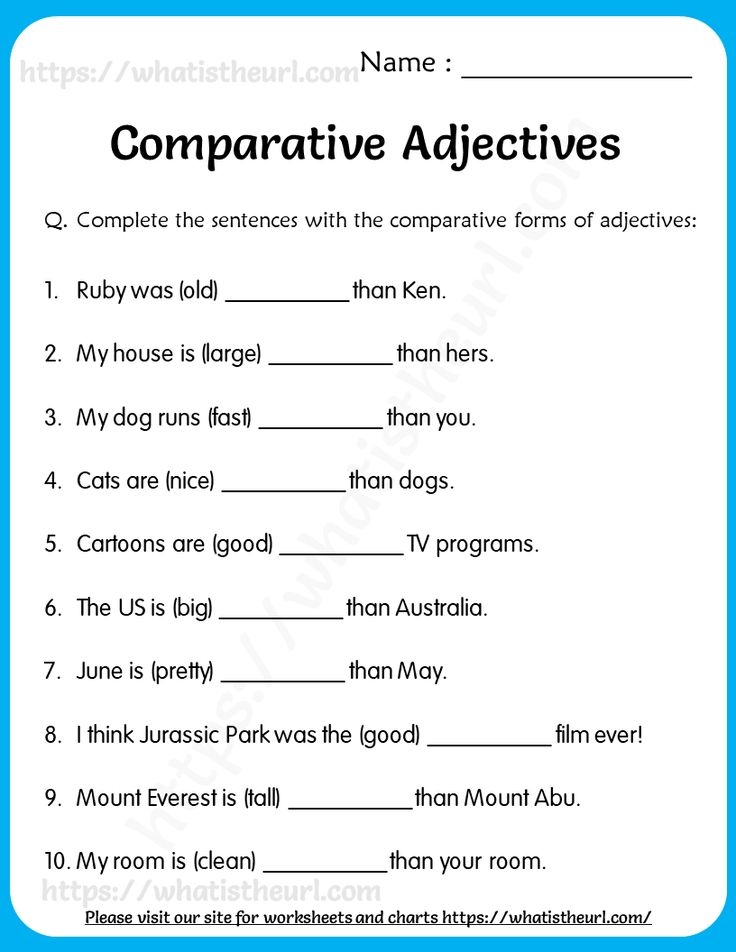 Comparative Adjectives Worksheet For Kids
