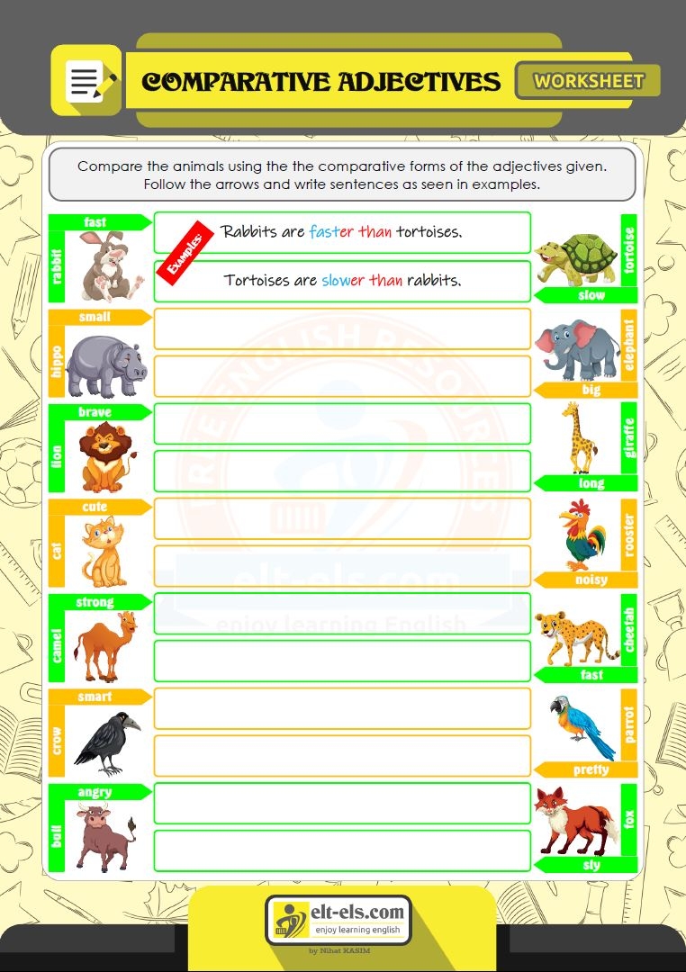 Comparative adjectives are used to compare two or more things. For example, “bigger,” “smaller,” and “faster” are all comparative adjectives. This worksheet will provide examples and practice exercises to help students understand how to use comparative adjectives correctly in sentences. With clear explanations and interactive activities, learning about comparative adjectives has never been easier!