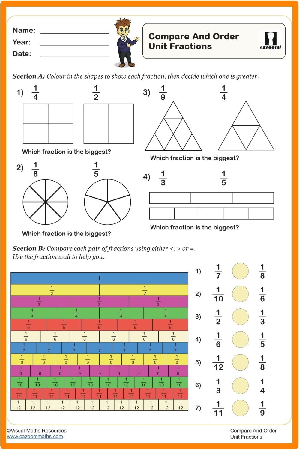 Compare And Order Unit Fractions Unit Fractions Fractions Worksheets
