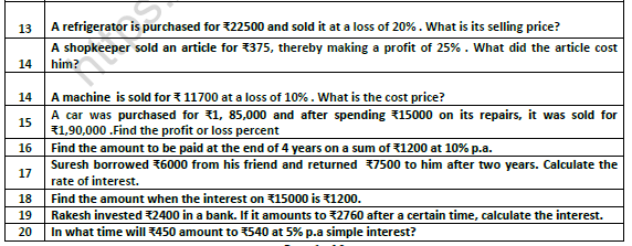 Comparing Quantities Worksheet For Class 7 Maths Chapter 8 Simple