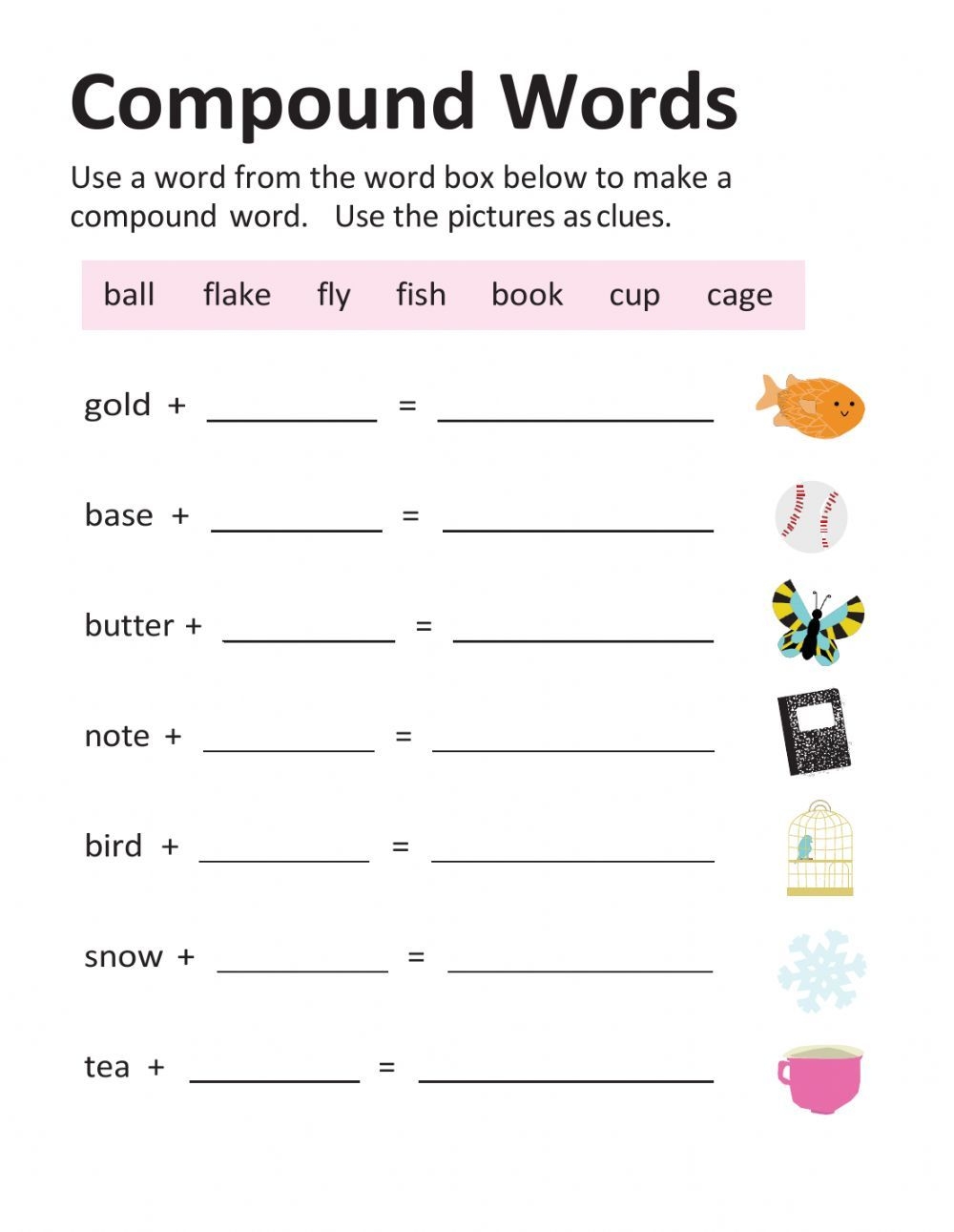 Download and Print Compound Words Worksheet Listed below