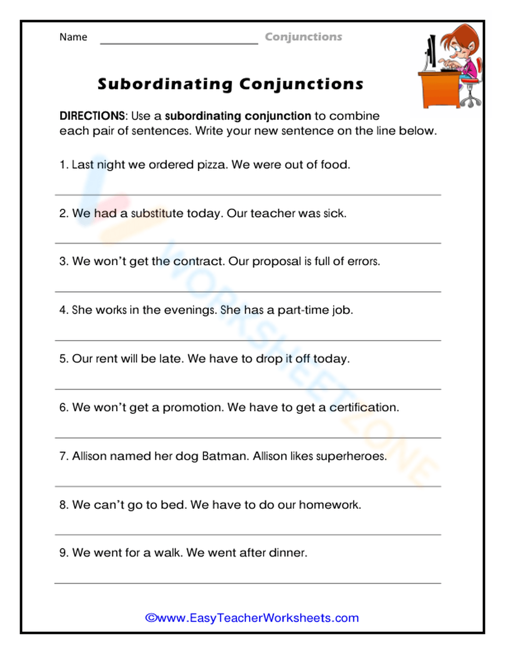 Download and Print Conjunctions Worksheet Listed below