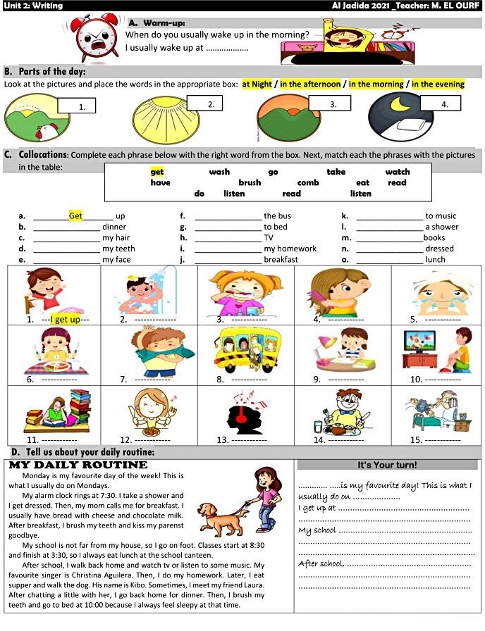 Writing Daily Routine Worksheet Lesson