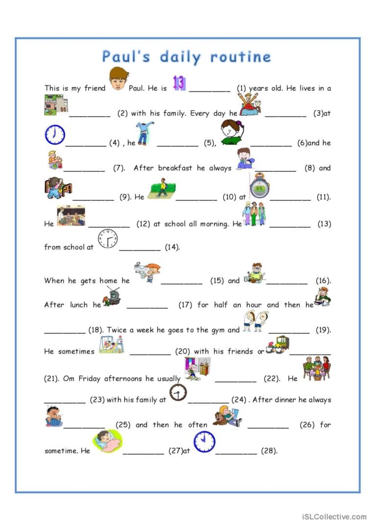 Daily Routine Worksheet For Adults