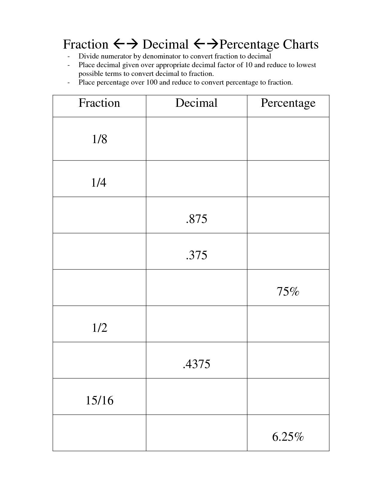 Fraction Decimal Percent Printable Worksheet Decimal WorksheetsFraction Decimal Percent Printable Worksheet Decimal Worksheets