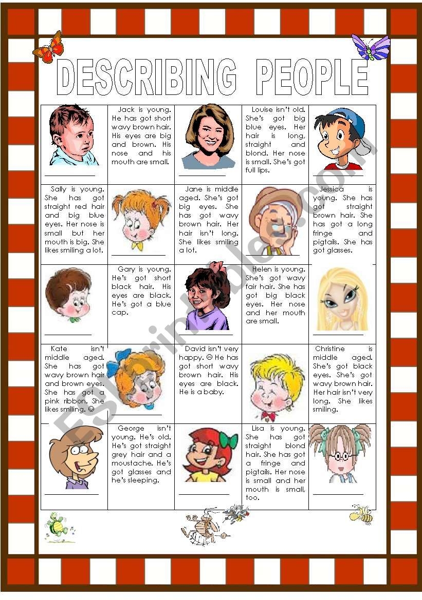 Are you looking for a fun and engaging way to help students practice describing people? A describing people worksheet can be a great tool to use in the classroom. These worksheets typically include pictures of different people, and students are tasked with describing their physical appearance, personality traits, and more.