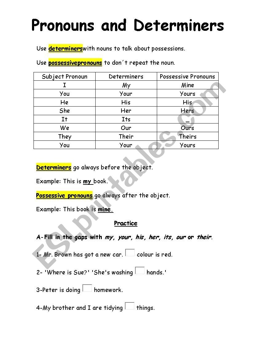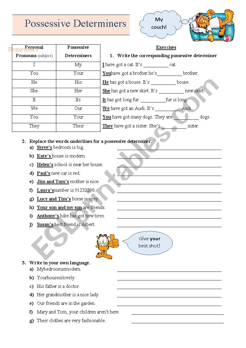 Possessive Determiners Worksheet