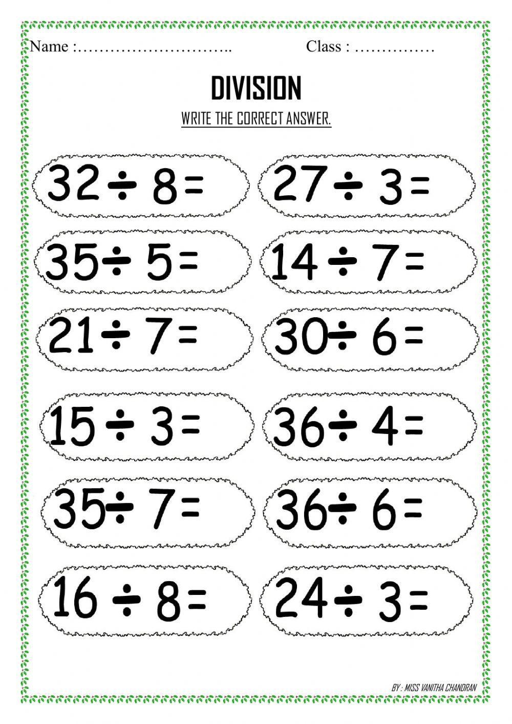 Download and Print Division Worksheet Listed below