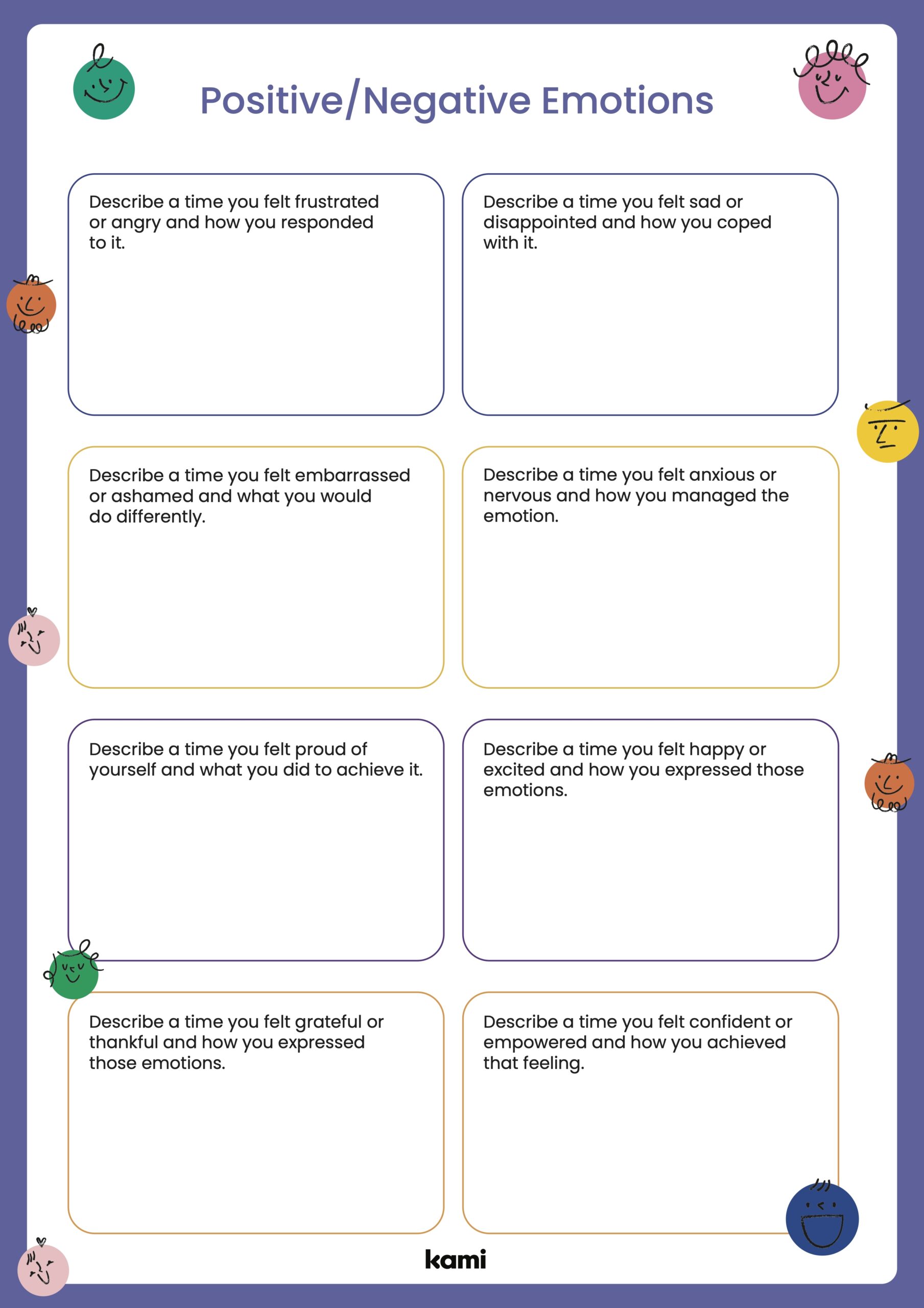 Emotions worksheets are designed to help you identify and explore your emotions in a structured way. They often include exercises such as journaling, reflection questions, and activities to help you process your feelings. These worksheets can be used on your own or with the guidance of a therapist or counselor.