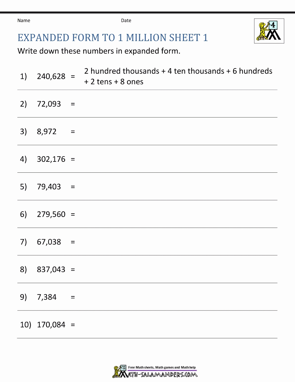 Download and Print Expanded Form Worksheets Listed below