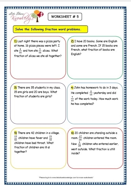 Fraction Word Problems Grade 6 Worksheets Worksheets Master