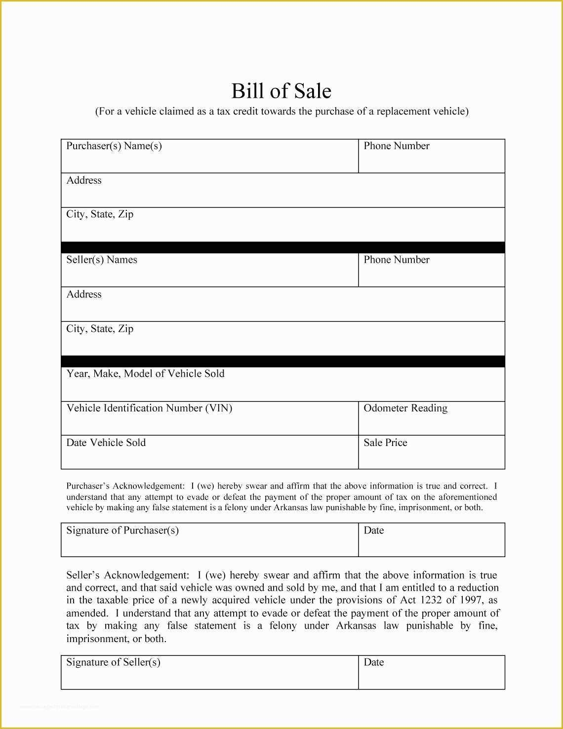 Free Vehicle Bill Of Sale Template Of Free Printable Free Car Bill Of
