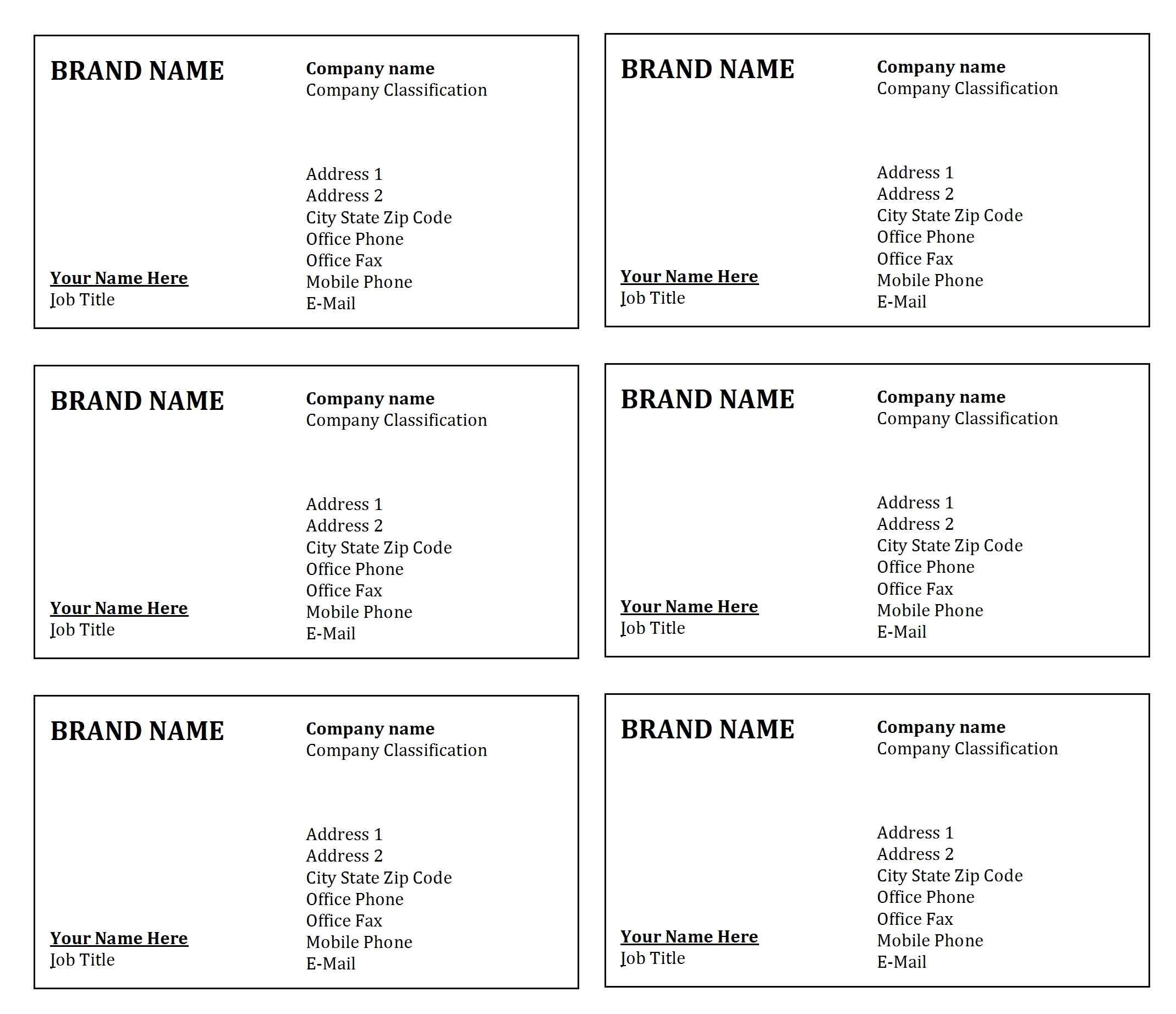 Download and Print Free Printable Business Cards Templates Listed below