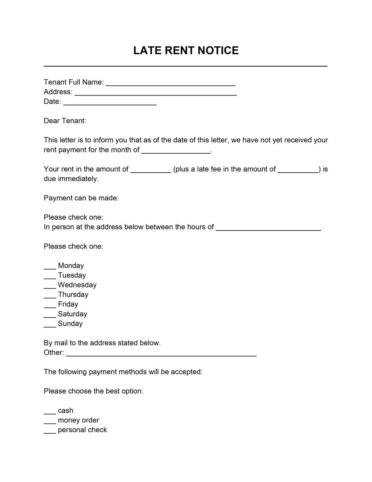 Free Printable Late Rent Notice Template Printable Word Searches 13760
