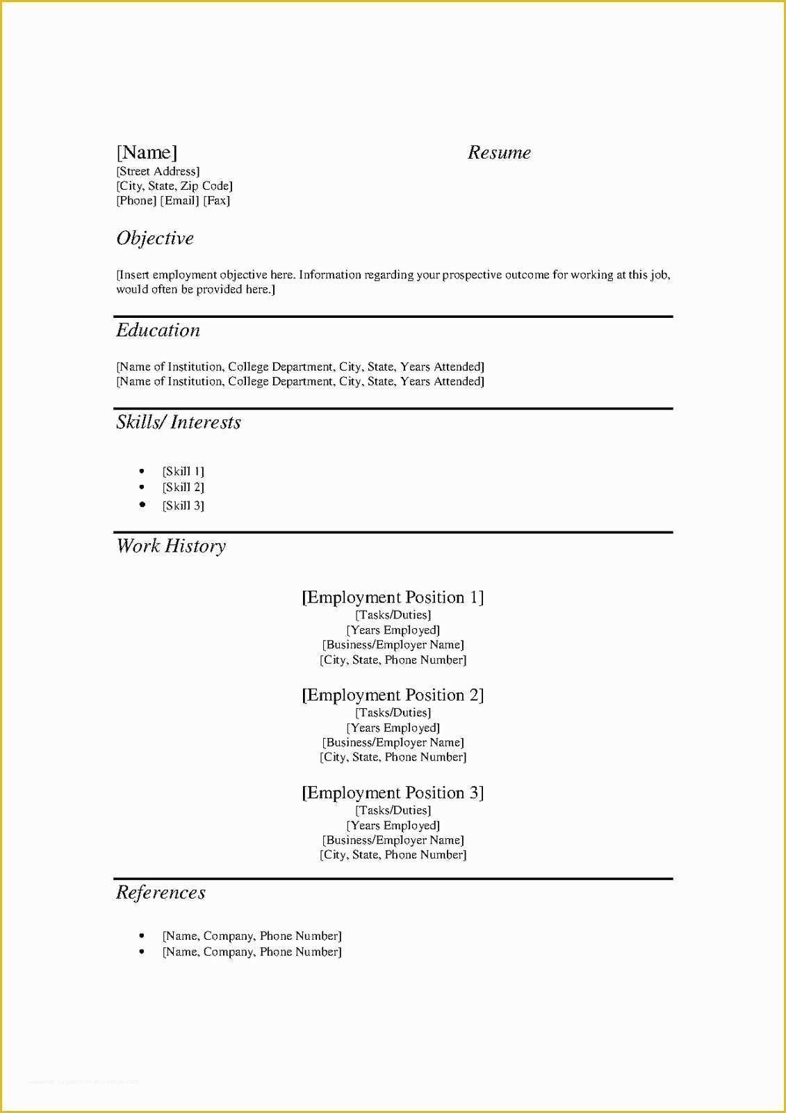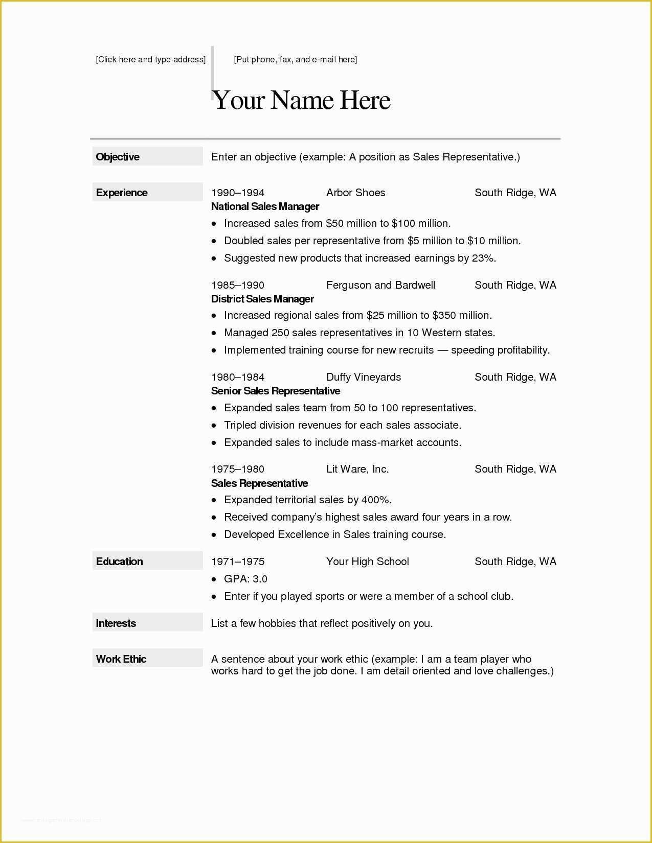 Free Printable Sample Resume Templates Of Free Printable Sample Resume
