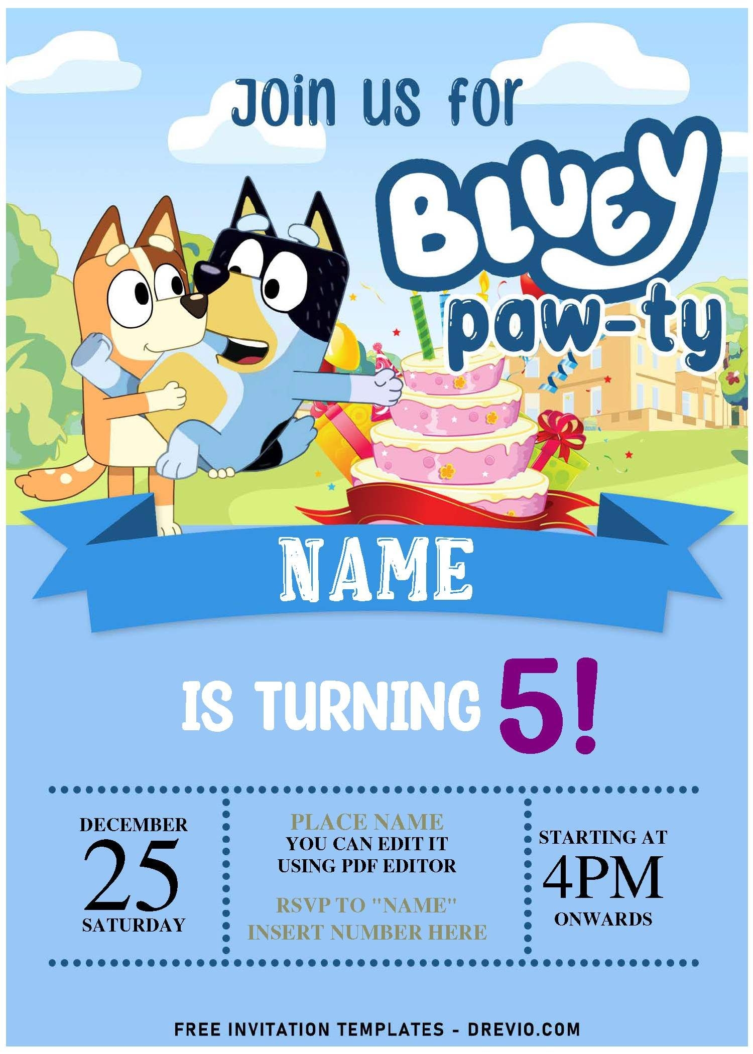 Download and Print Free Printable Template Printable Bluey Birthday Invitation Listed below