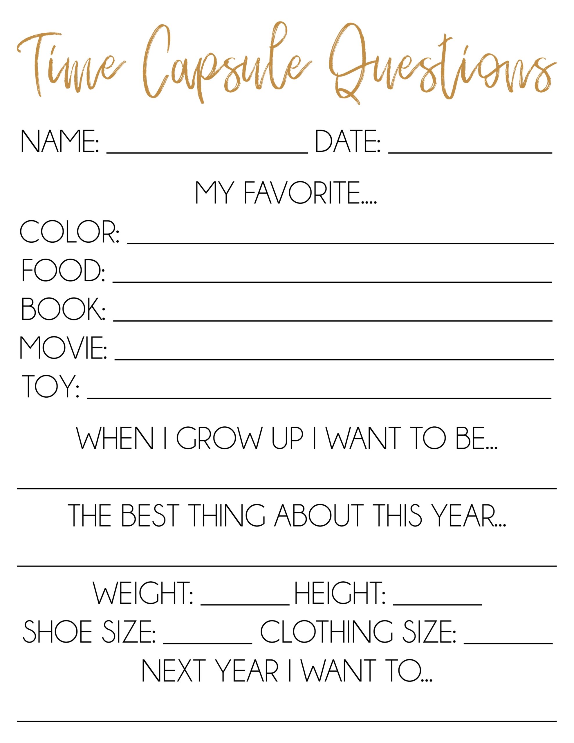 Time Capsule Questions Free Printable Sarah Halstead