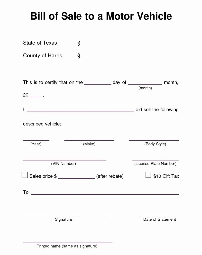 Printable Vehicle Bill Of Sale Template Word