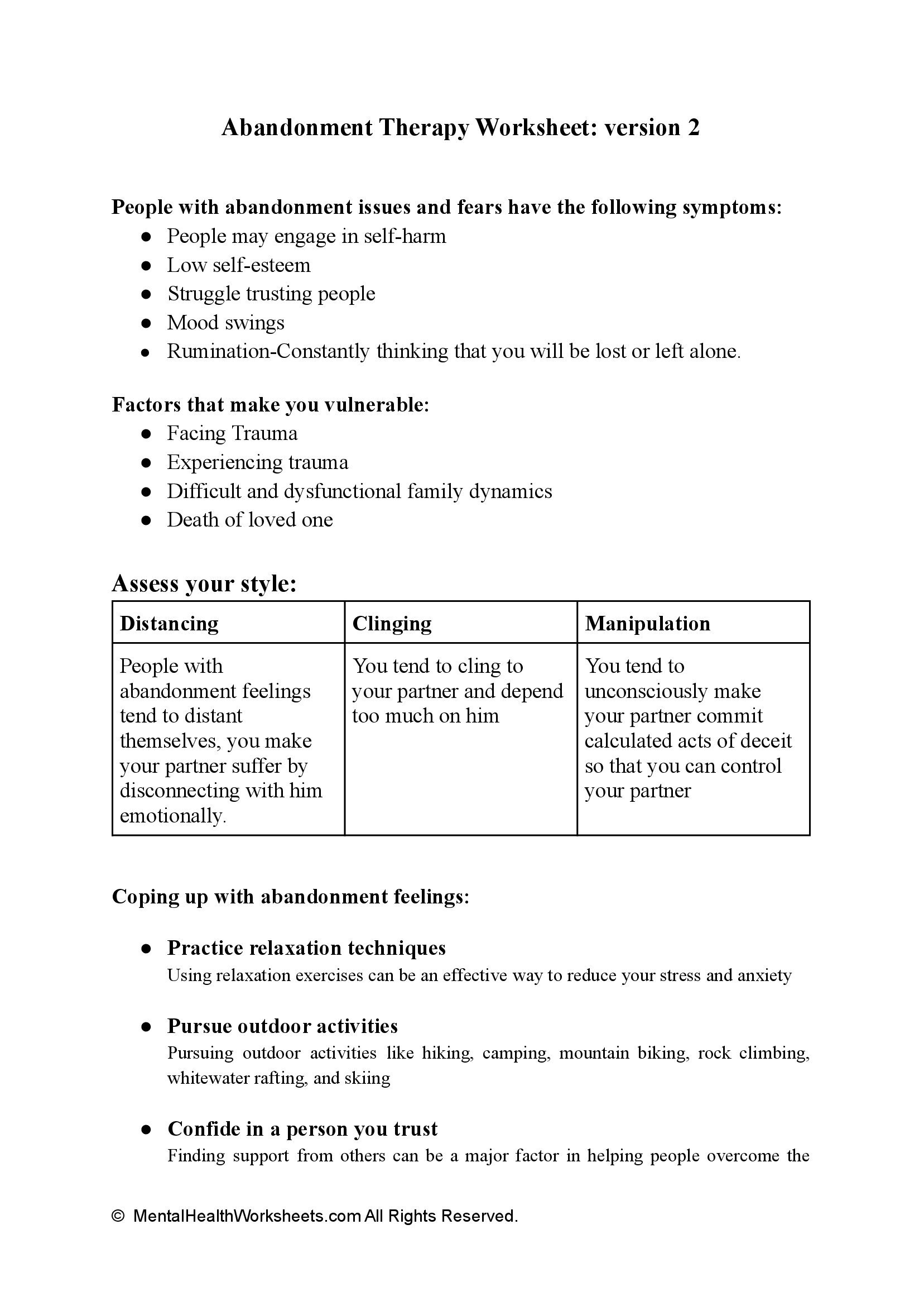 Abandonment Issues Worksheets Therapy Aid Anger Management Worksheets