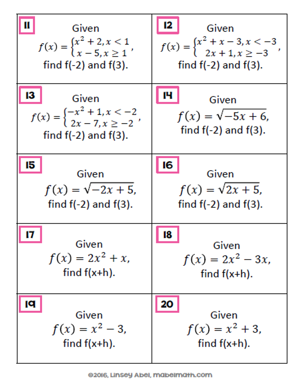 Download and Print Function Notation Worksheet Listed below