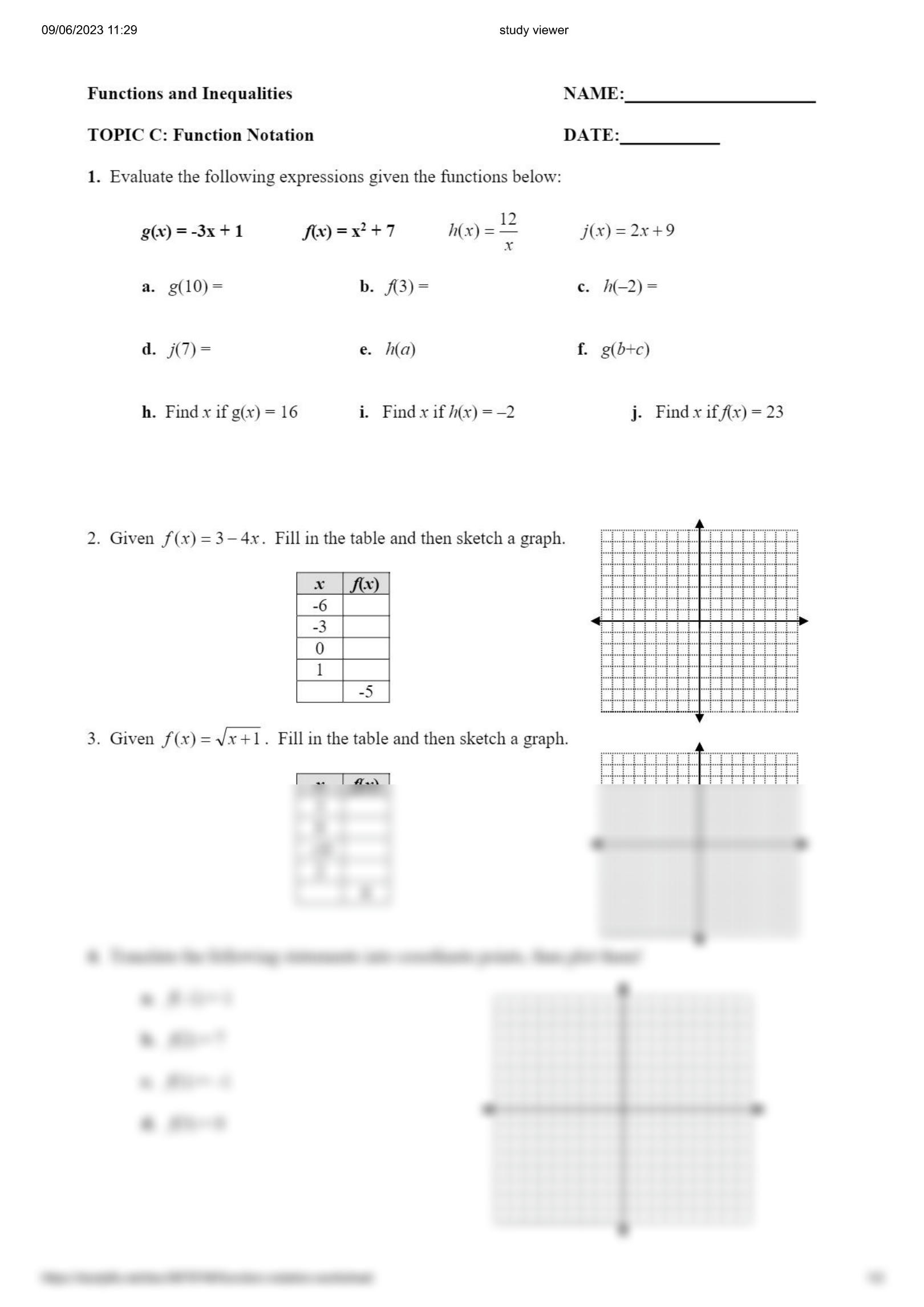 SOLUTION Function Notation Worksheet Studypool Worksheets Library