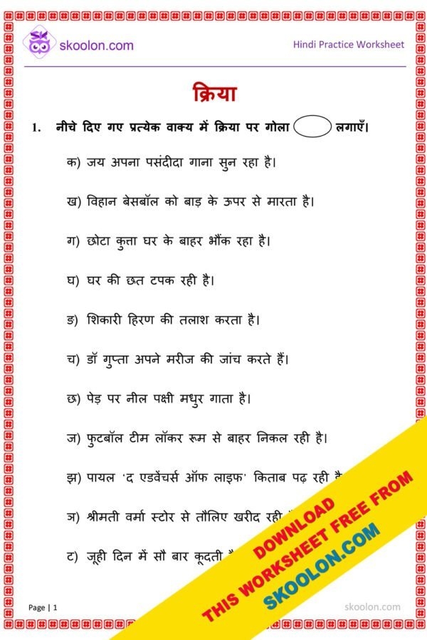 Hindi Grammar Kriya Worksheet 5 SkoolonHindi Grammar Kriya Worksheet 5 Skoolon