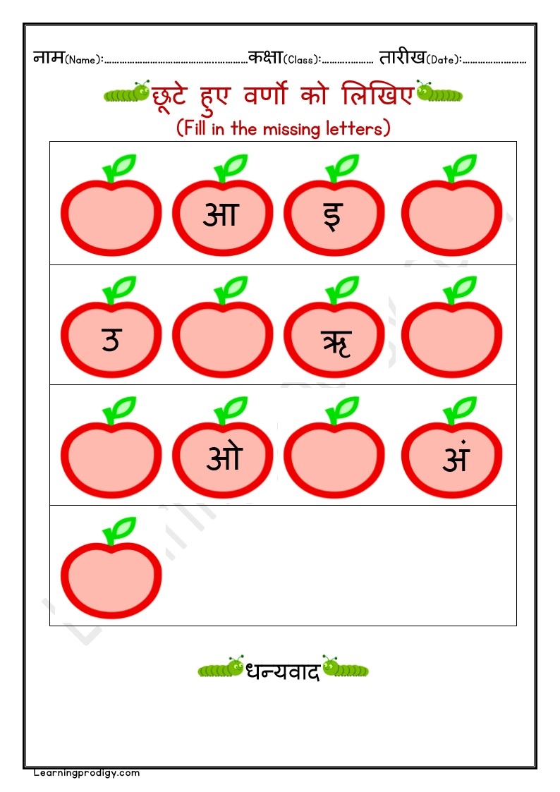 Free Downloadable Hindi Worksheet For Nursery Kids Hindi Missing