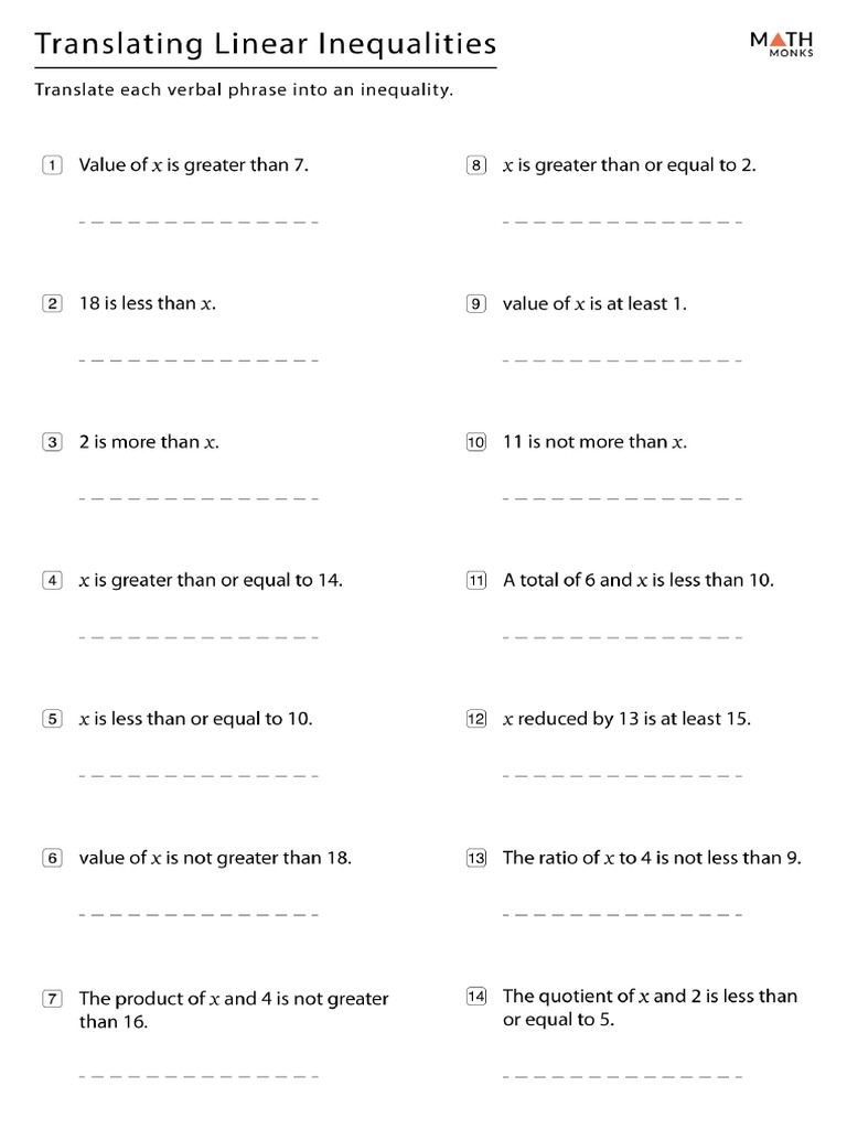 Translating Linear Inequalities Worksheet PDF Worksheets Library