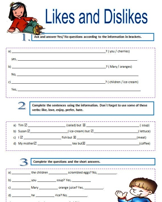 Likes And Dislikes Worksheets