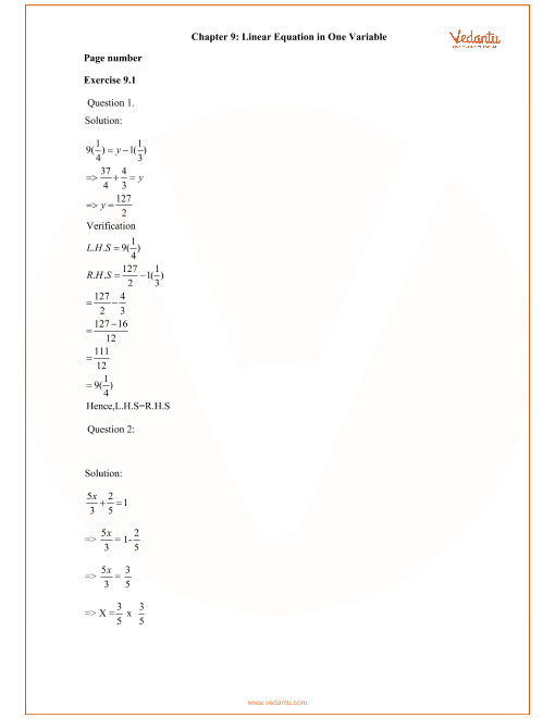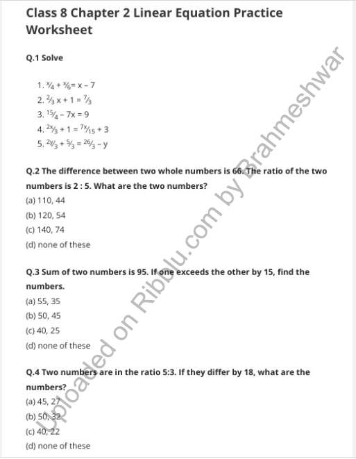 Download and Print Linear Equation Class 8 Listed below